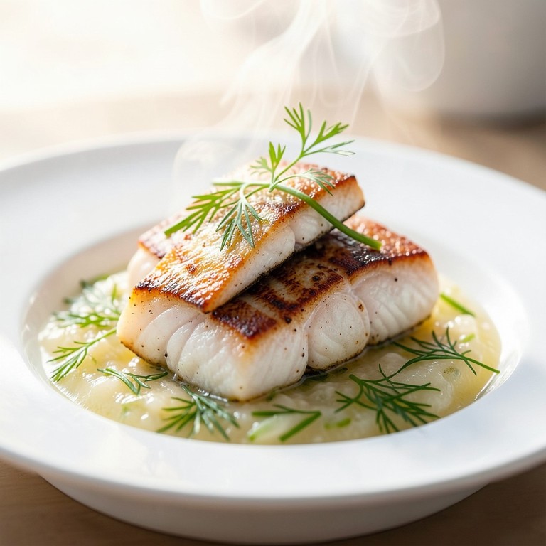 - Filet de Bar Poêlé, Compotée de Fenouil à l'Anis Étoilé
