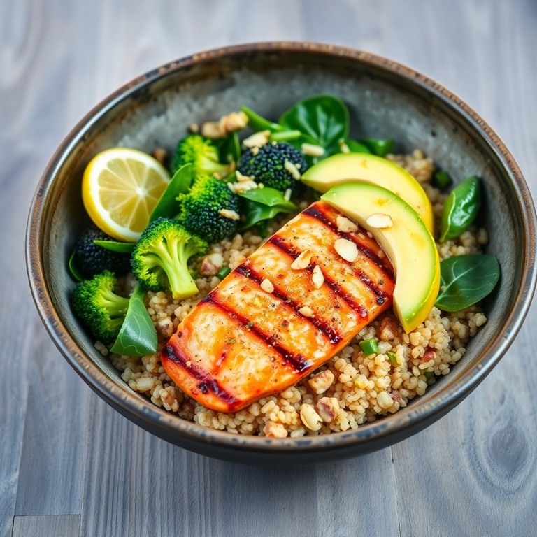 Salade de Quinoa au Saumon Grillé, Légumes Verts et Vinaigrette Citronnée