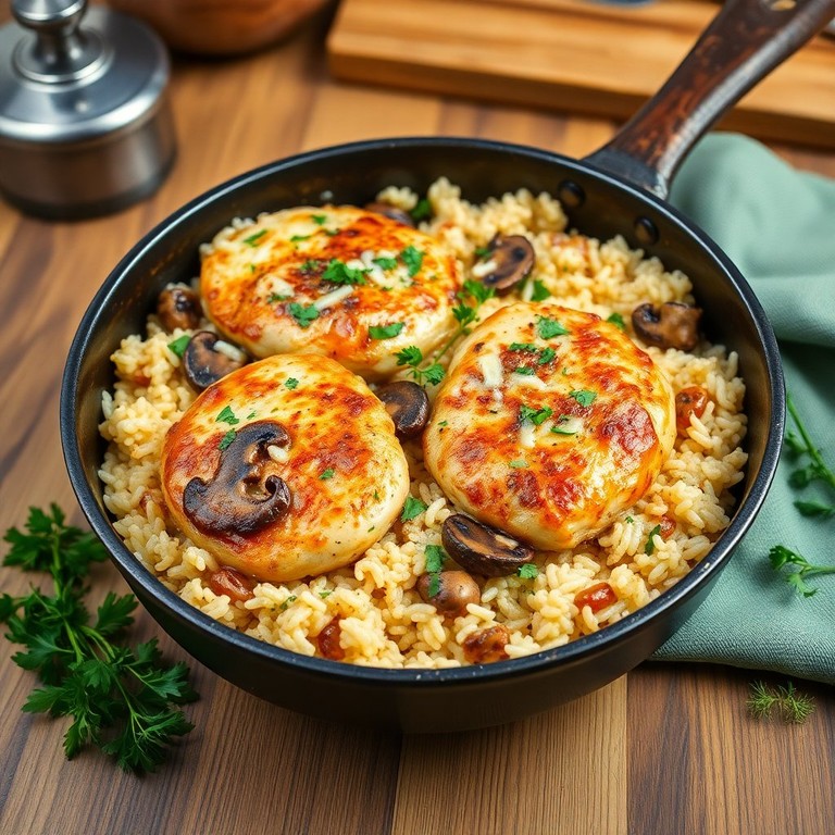 One-Pan Chicken and Mushroom Rice Bake