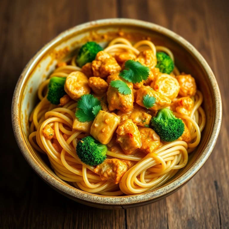 Pâtes au Poulet et Brocoli dans une Sauce Curry Épicée