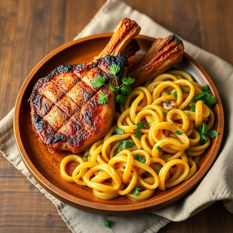 - Côtes de porc épicées aux pâtes torti maison