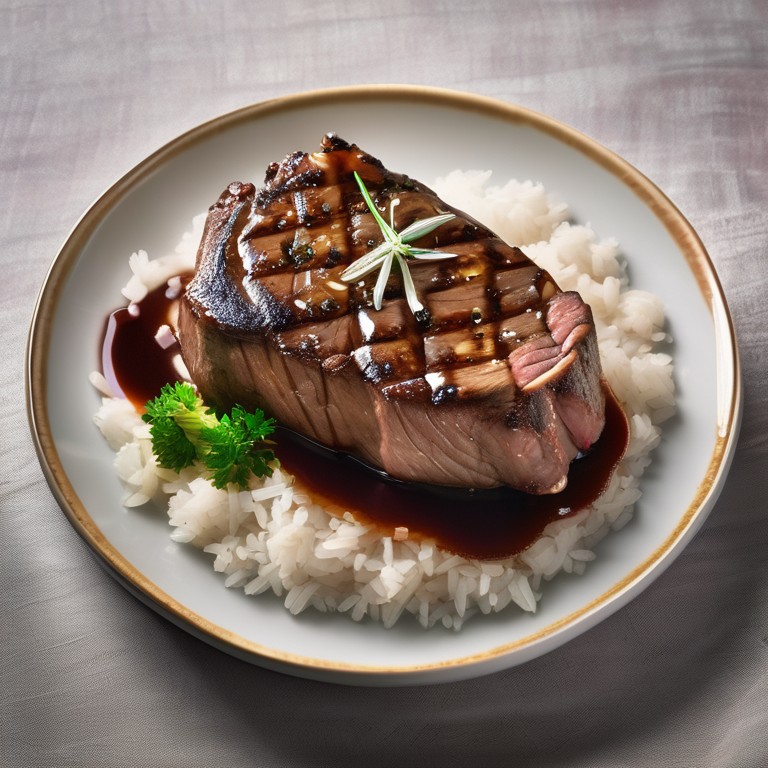 Steak en Sauce miel-cannelle avec Riz
