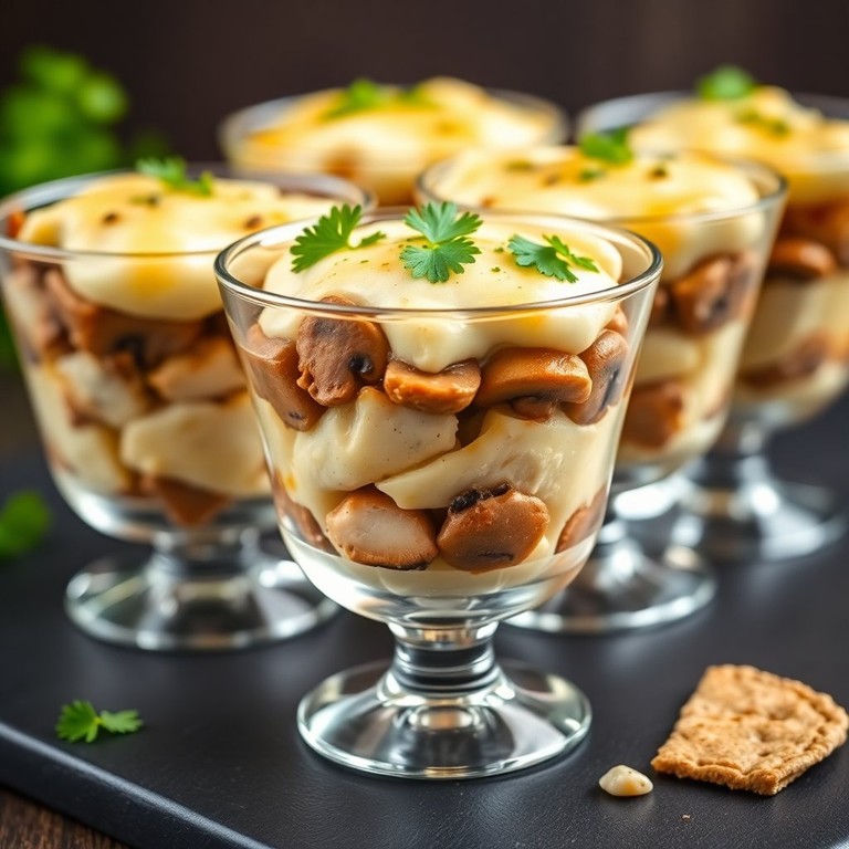 Verrines Gourmandes au Poulet et Champignons avec une Touche de Fromage