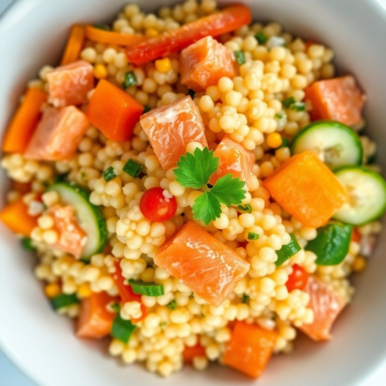 Perles de Couscous au Saumon Fumé et Légumes Croquants