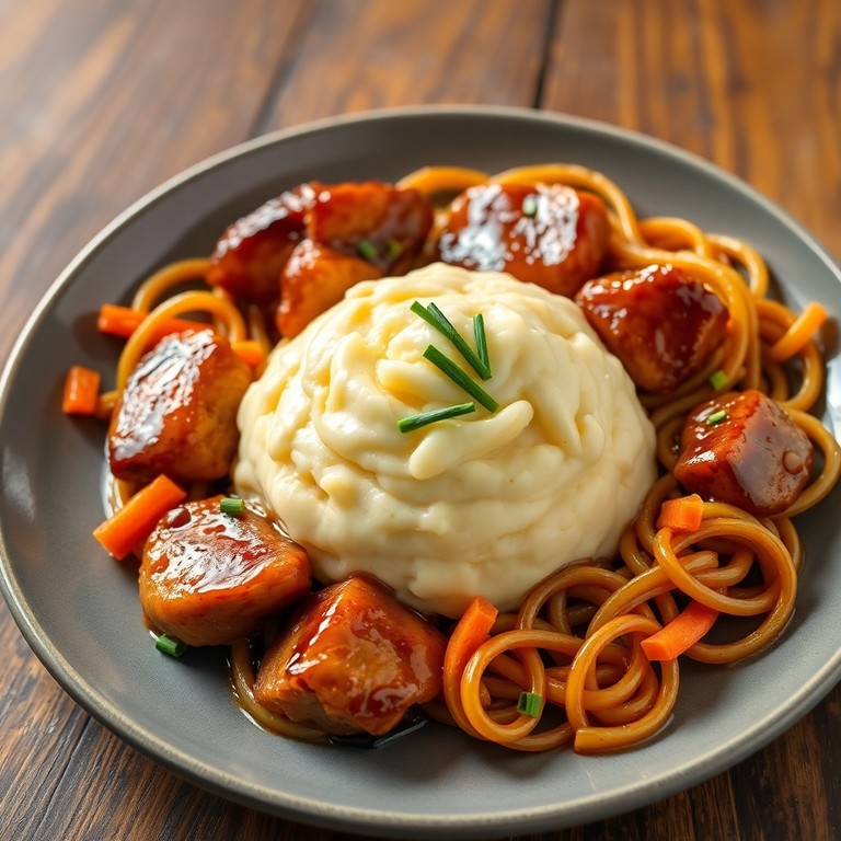 - Poulet Teriyaki aux Nouilles et Purée de Pommes de Terre à la Française