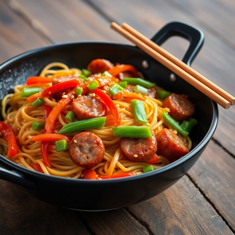 Stir-fry de Pâtes et Saucisses à la Chinoise