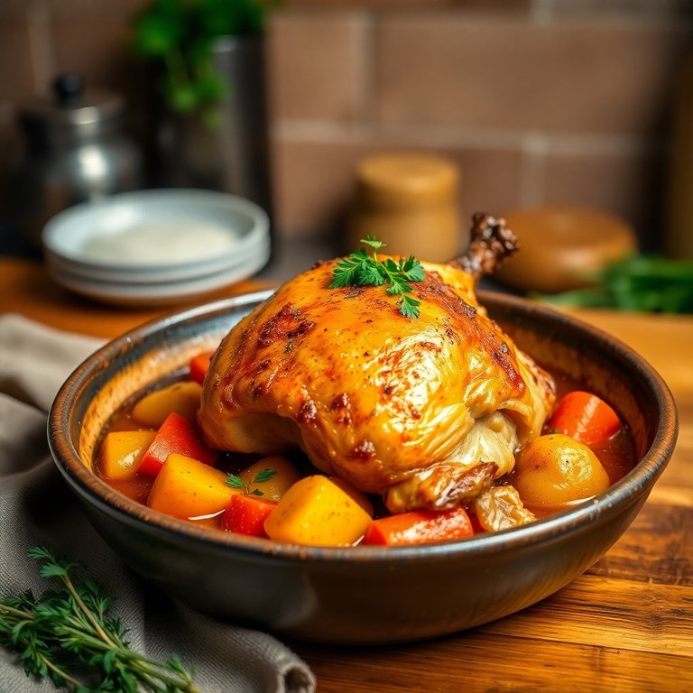 Cuisse de Poulet Rôtie avec Pommes de Terre et Carottes en Ragoût