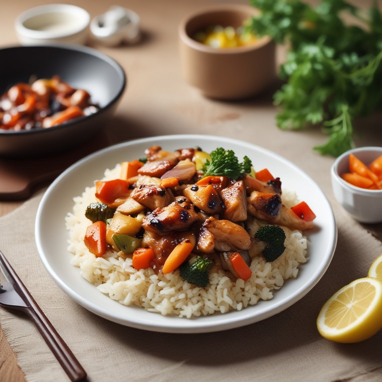 Pollo Teriyaki con Arroz al Limón y Verduras Salteadas