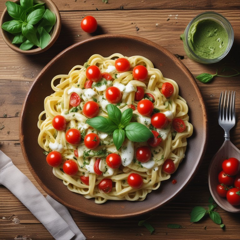 Pâtes au Pesto et Mozzarella avec Tomates Fraîches