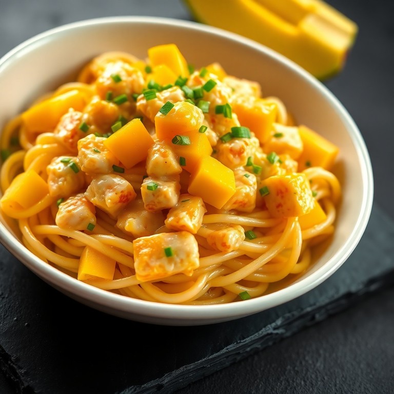 Pâtes Carbonara Revisité au Poulet et Mangue