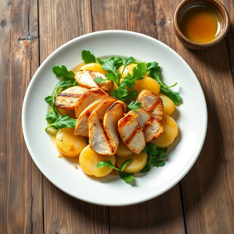 Salade tiède de poulet, pommes de terre et zeste d’orange