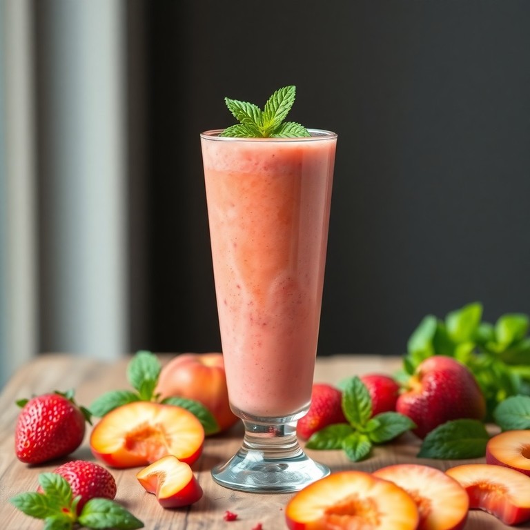 Smoothie Énergisant Fraises-Pêches à la Menthe