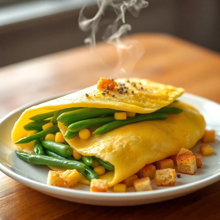 Omelette Forestière aux Haricots Verts, Maïs et Croûtons