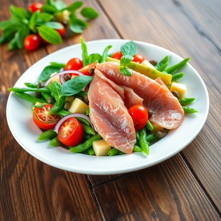Salade méditerranéenne aux haricots verts et truite fumée