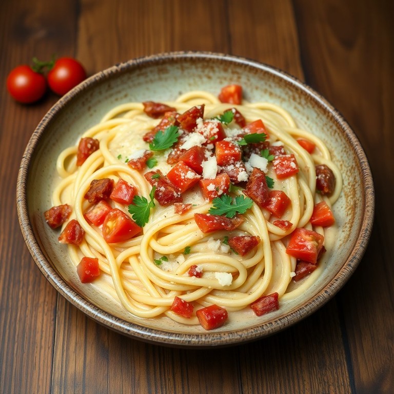 Pâtes Crémeuses aux Lardons Fumés et Tomates Fraîches
