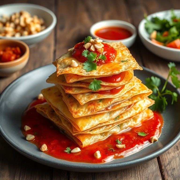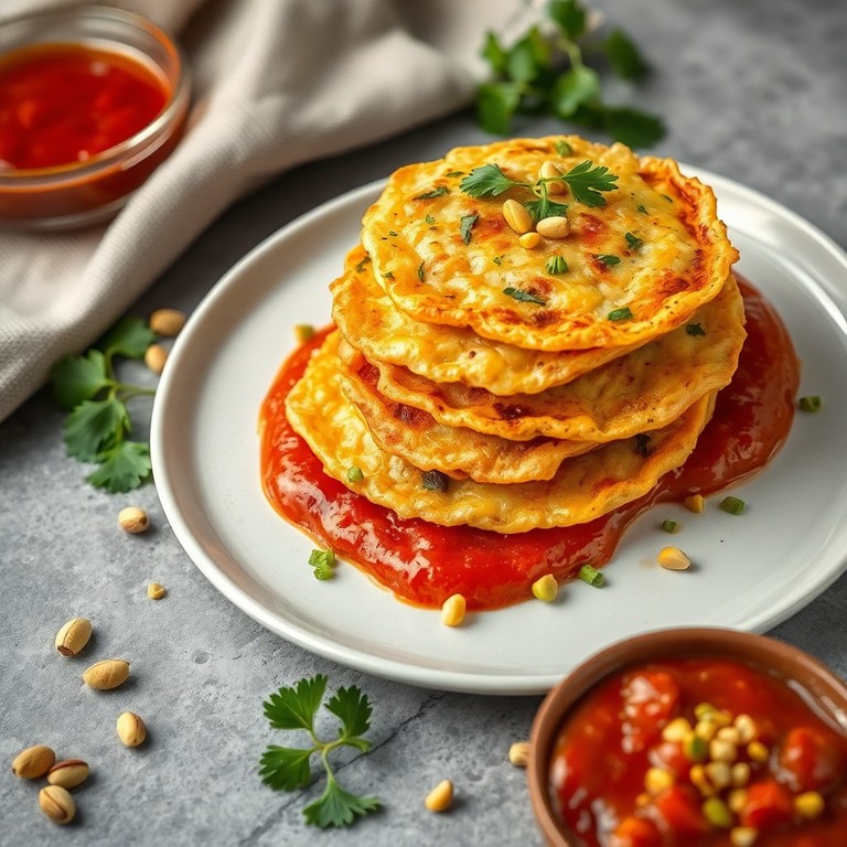- Galettes de Riz aux Légumes et Fromage Cottage, Servies avec Sauce Tomate et Pistaches