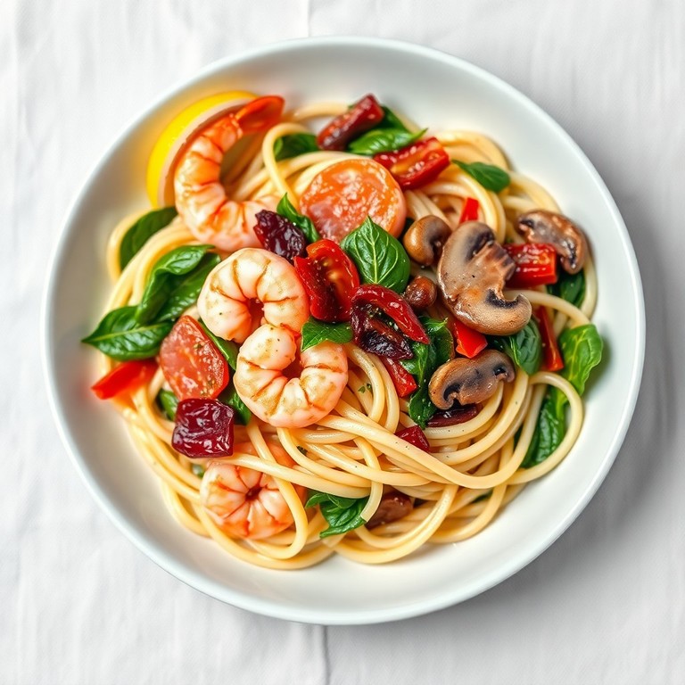 - Fettuccine aux crevettes, saumon cuit et épinards en sauce légère au vin blanc