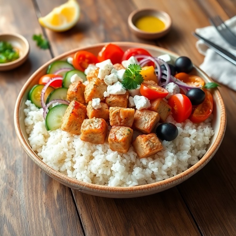 - Bowl Méditerranéen au Riz, Porc Sauté et Feta