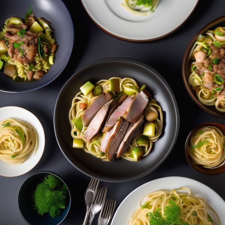 Aiguillette de Canard aux Poireaux et Courgettes avec Pâtes