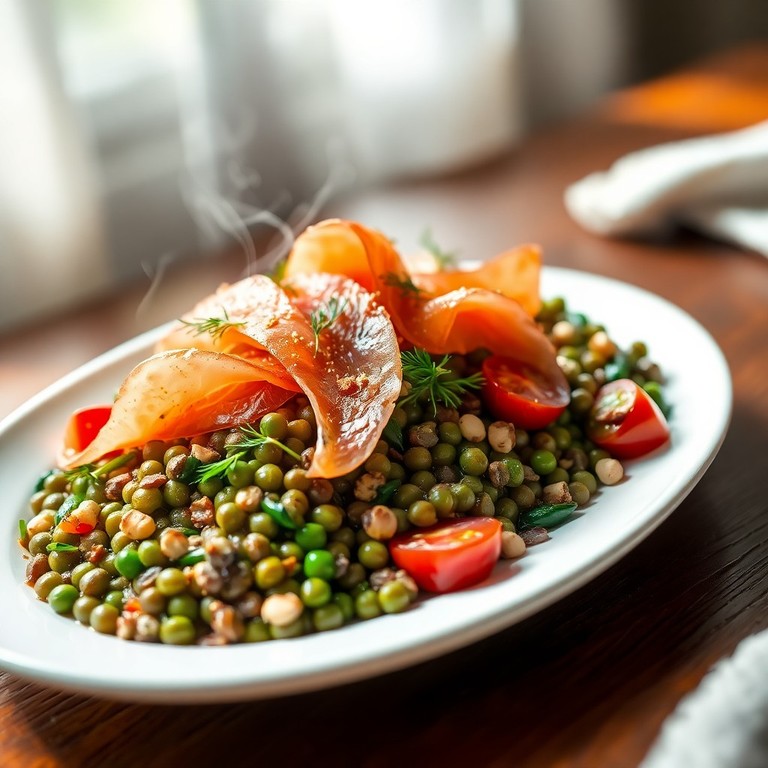 Salade Tiède de Lentilles Vertes du Puy et Saumon Fumé