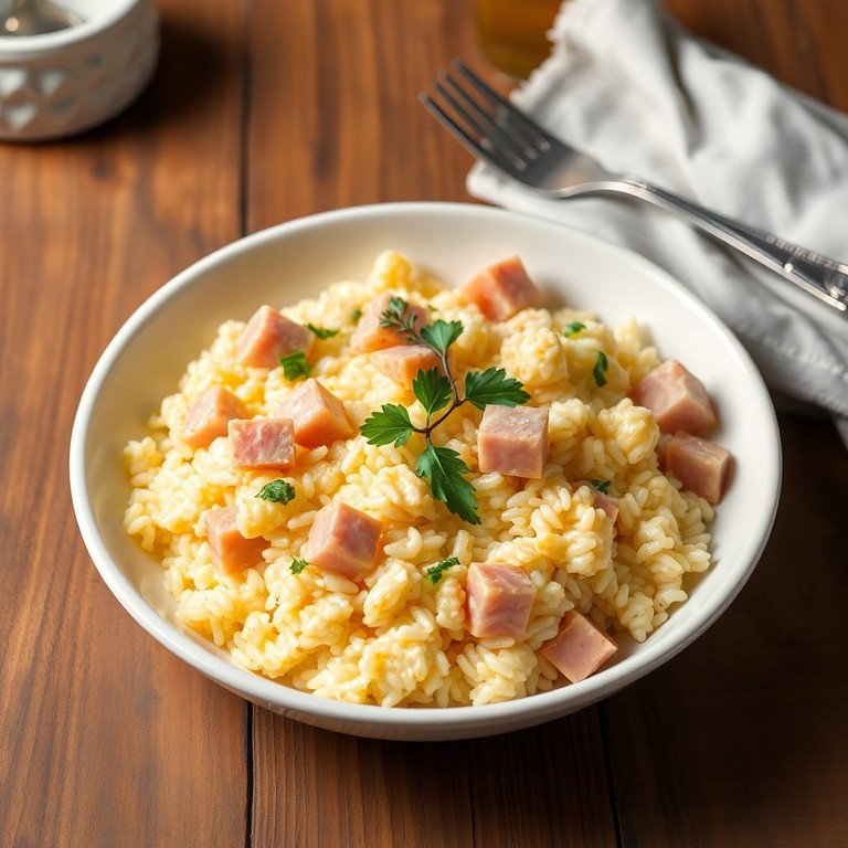 Riz sauté au jambon et œufs à la mode française