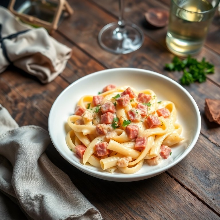 Pâtes crémeuses au jambon et échalotes