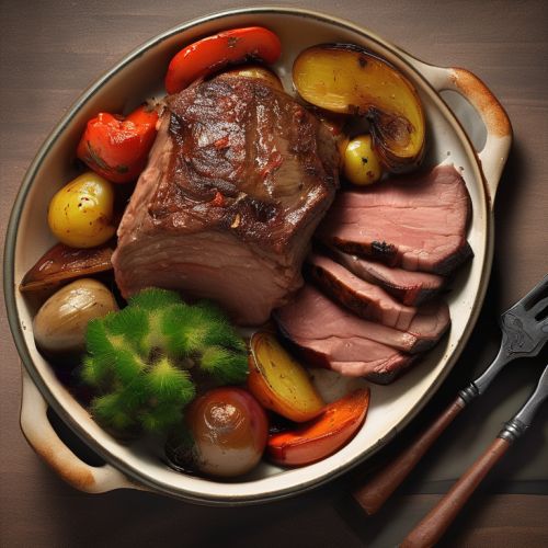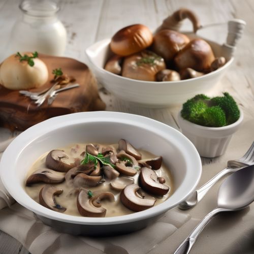 Meat and Mushrooms Baked with Cream-Cheese Sauce