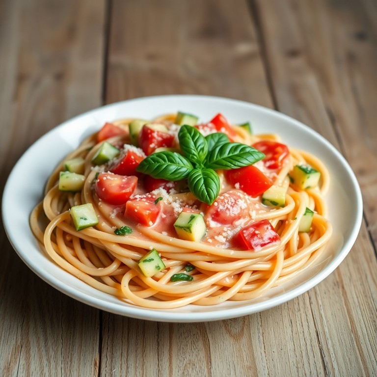 Spaghetti à la sauce crémeuse de tomate et courgette