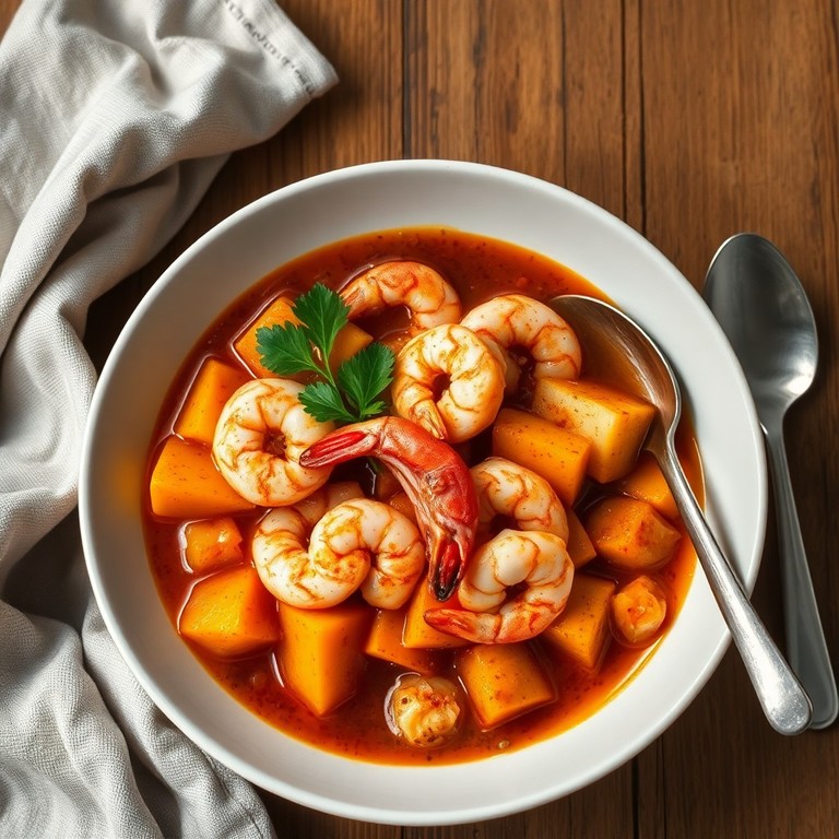 Ensopado Tropical de Camarão com Jerimum e Cebola