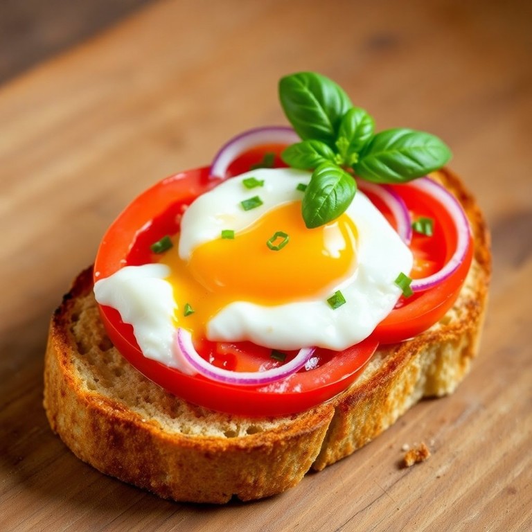 Tartine de Champignons et Oeufs Bénédictine sur Lit de Tomates