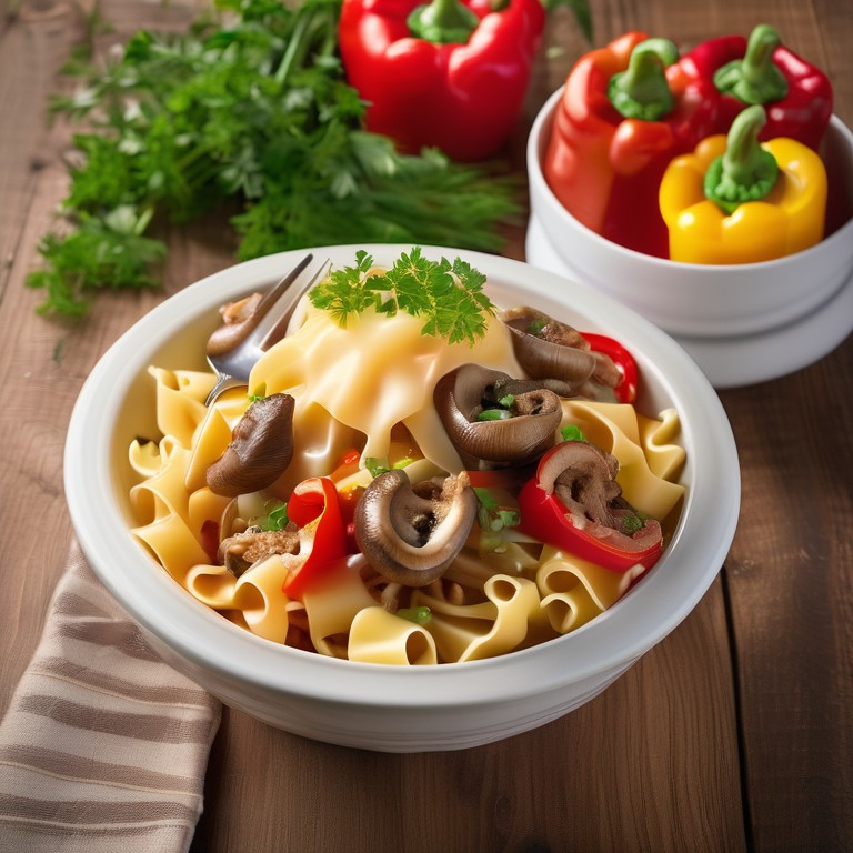 Pâtes aux Œufs avec Fromage, Champignons, Poivrons et Viande Hachée
