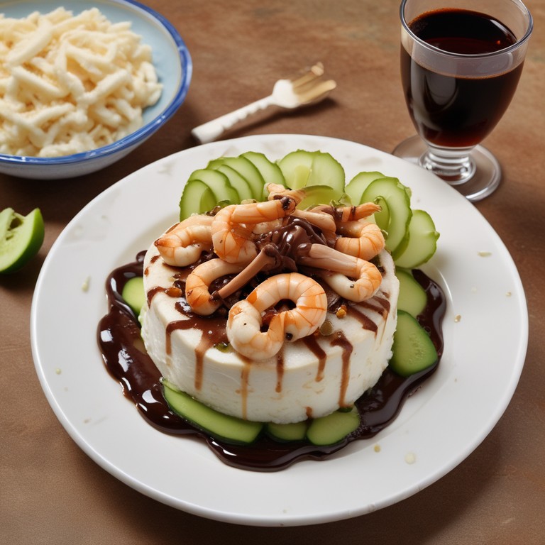 Десерт из морепродуктов с шоколадным соусом и мороженым