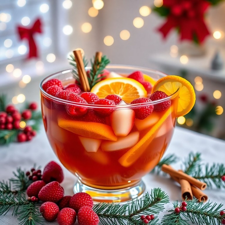 Punch de Noël au Thé Glacé avec Fruits Rouges et Cannelle