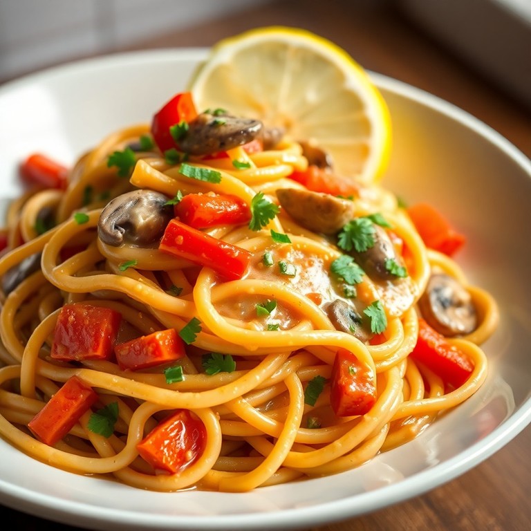 Pâtes aux Légumes Sautés et Sauce Crème Citronnée