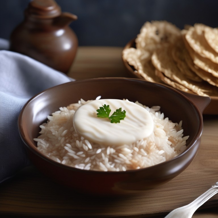 Un délicieux plat de riz savoureux infusé de thon et crémeux avec une touche de crème fraîche.