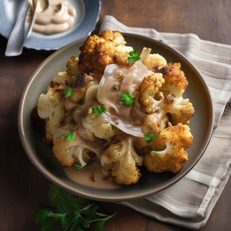 Un plat délicieux de choux-fleurs avec une crème fraîche onctueuse et des oignons caramélisés. Parfait pour une touche de sophistication à votre repas.