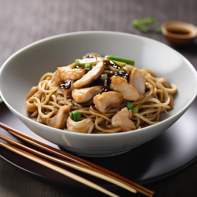 Nouilles au Poulet et aux Champignons avec Sauce Soja