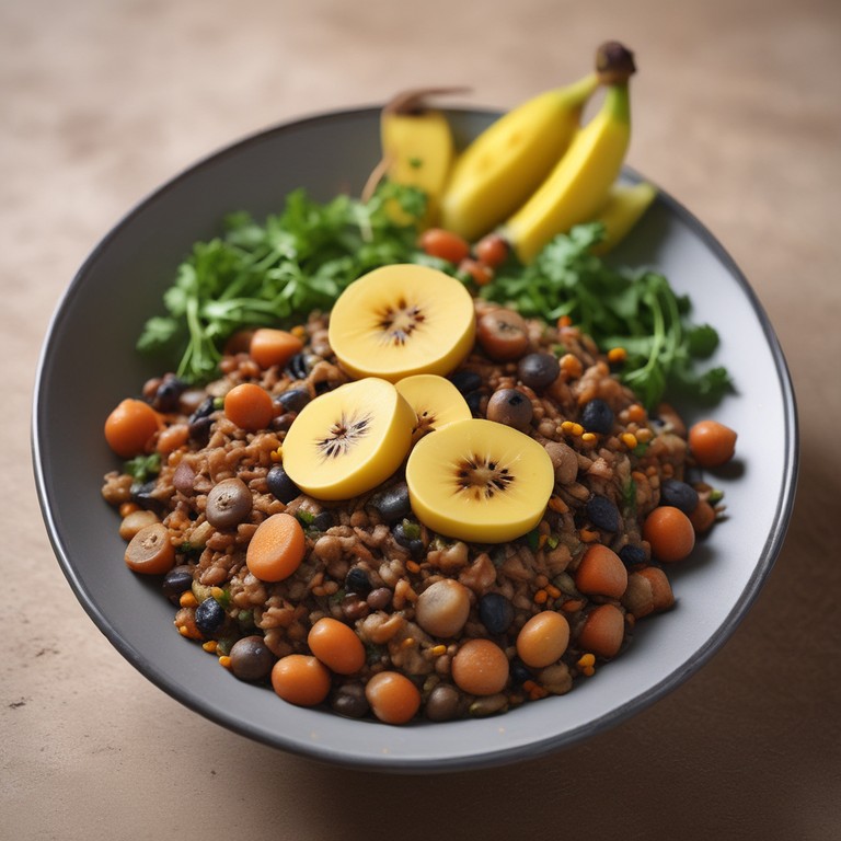 Une salade savoureuse et équilibrée avec des lentilles, des dattes sucrées et des bananes fraîches, assaisonnée d'une vinaigrette à base de sauce soja et d'épices.