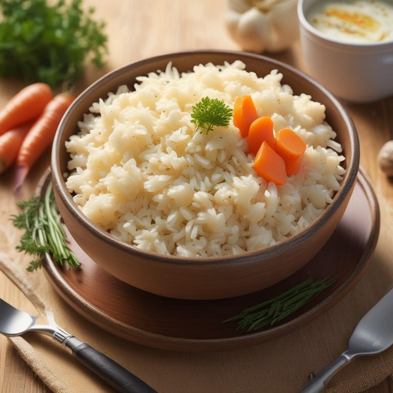 Un delicioso plato de arroz con papas, zanahorias y cebollas, lleno de sabor y nutrientes.