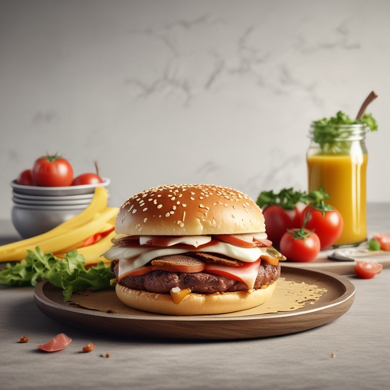 Esta hamburguesa doble cielo es una explosión de sabores y texturas, combinando la jugosidad de la carne con el crujiente del bacon y la cremosidad de los quesos. Perfecta para una comida especial o una reunión con amigos.
