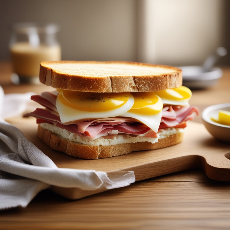 Este sándwich de huevo duro es una opción deliciosa y nutritiva, ideal para un almuerzo rápido o un picnic. La combinación de jamón, queso y la cremosidad de la mayonesa y mostaza lo hacen irresistible.