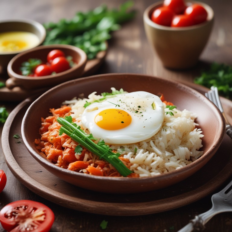 Un plat savoureux de riz basmati cuit dans une sauce tomate épicée, garni d'œufs, parfait pour un repas réconfortant.