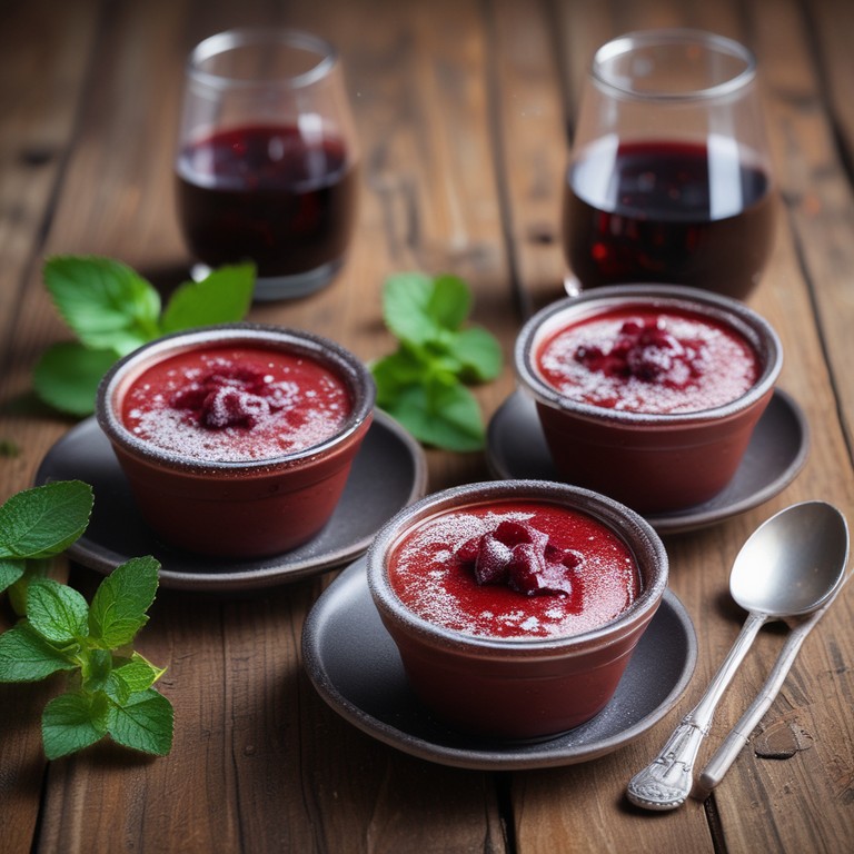 Une délicieuse crème au vin rouge, parfaite pour un dessert élégant et raffiné, alliant la douceur de la crème à la richesse du vin rouge.