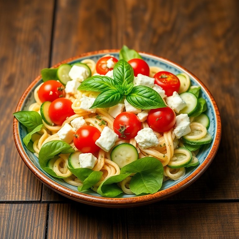 Une délicieuse salade de pâtes crémeuse avec du fromage Boursin, des tomates juteuses et des concombres croquants, parfaite pour un repas léger et rafraîchissant.