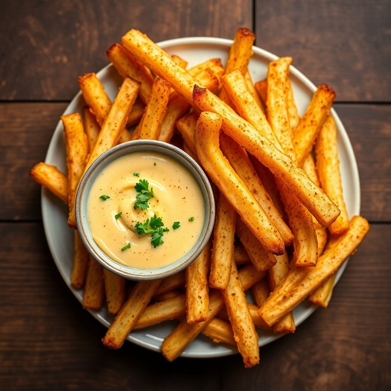 These Crispy French Fries with a Gourmet Twist are not your average fries. They are perfectly seasoned and paired with a zesty dipping sauce that elevates the classic snack to a gourmet experience.