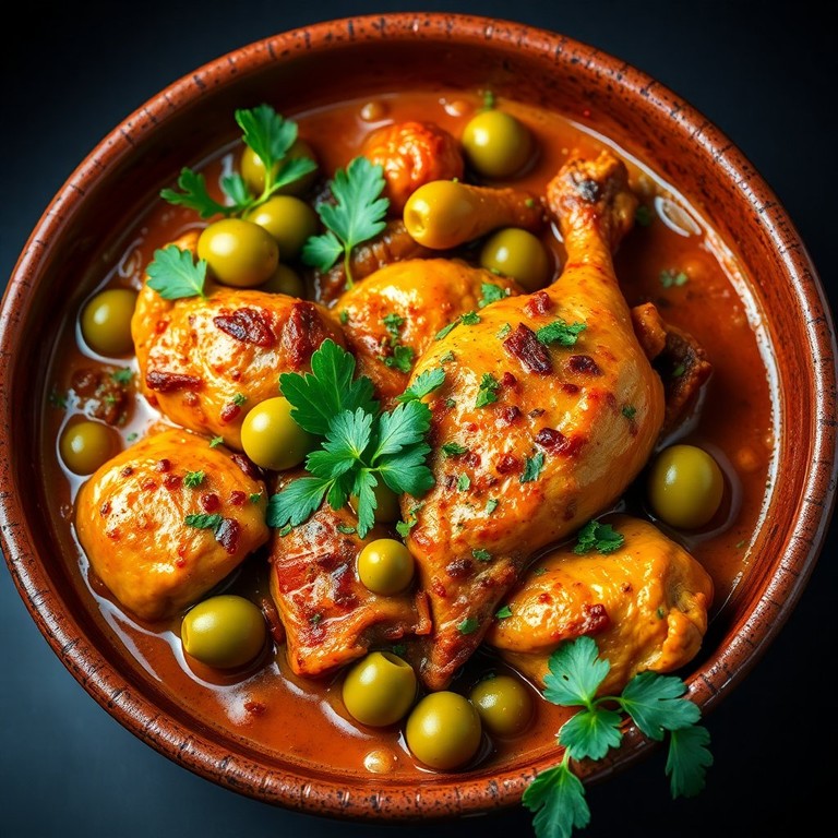 Ce tajine de poulet aux olives vertes et épices est un plat emblématique de la cuisine marocaine, alliant des saveurs riches et des textures variées. Parfait pour un repas convivial, il ravira vos invités avec ses arômes envoûtants et sa présentation colorée.