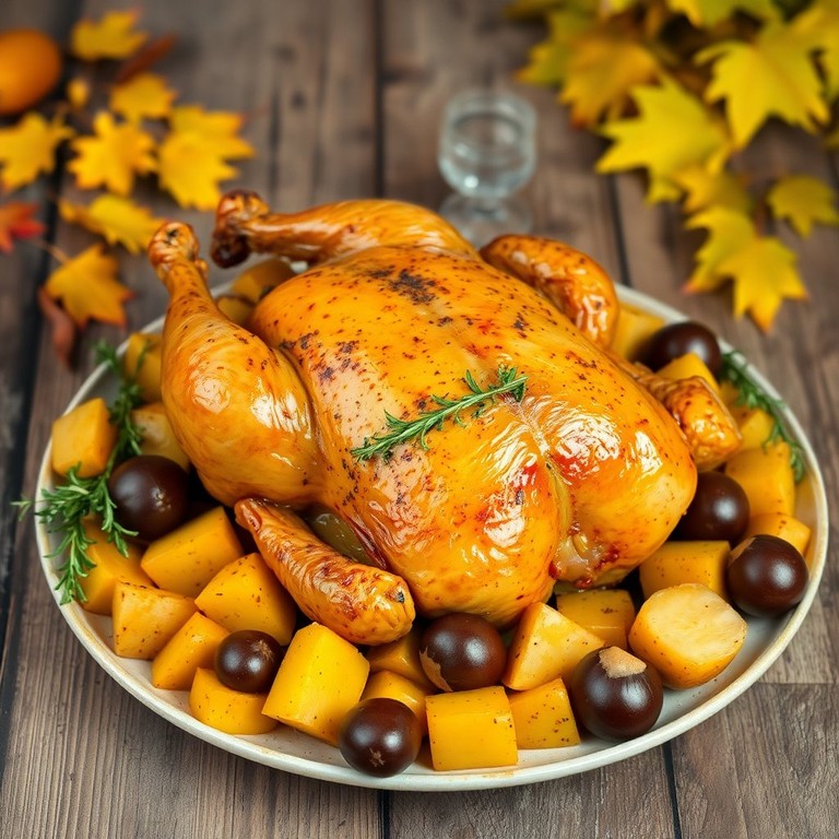 Un plat réconfortant qui combine la tendreté du poulet rôti avec la douceur des châtaignes et des pommes de terre, parfait pour les repas d'automne.