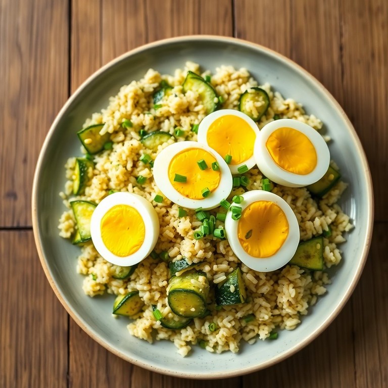 Un plat rapide et délicieux, parfait pour un dîner en semaine, combinant le riz basmati, les courgettes croquantes et des œufs durs pour un repas équilibré et savoureux.