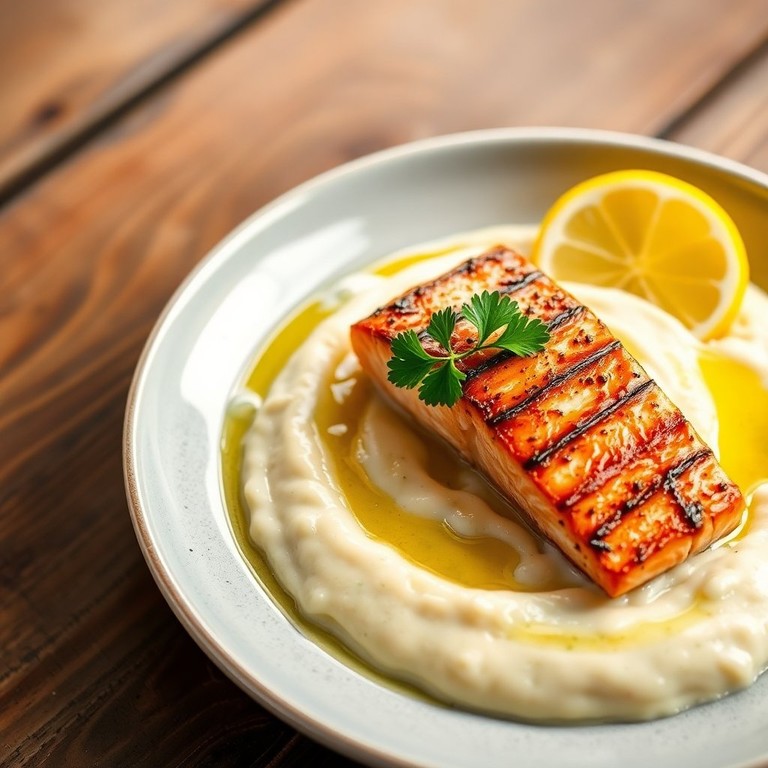 Purée de Céleri-Rave et Pommes de Terre à l'Huile d'Olive et Saumon Grillé