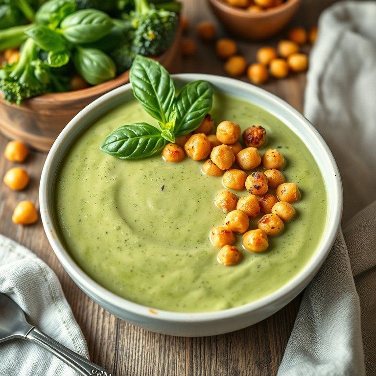 Velouté de Brocoli et Courgette au Basilic avec Pois Chiches Rôtis